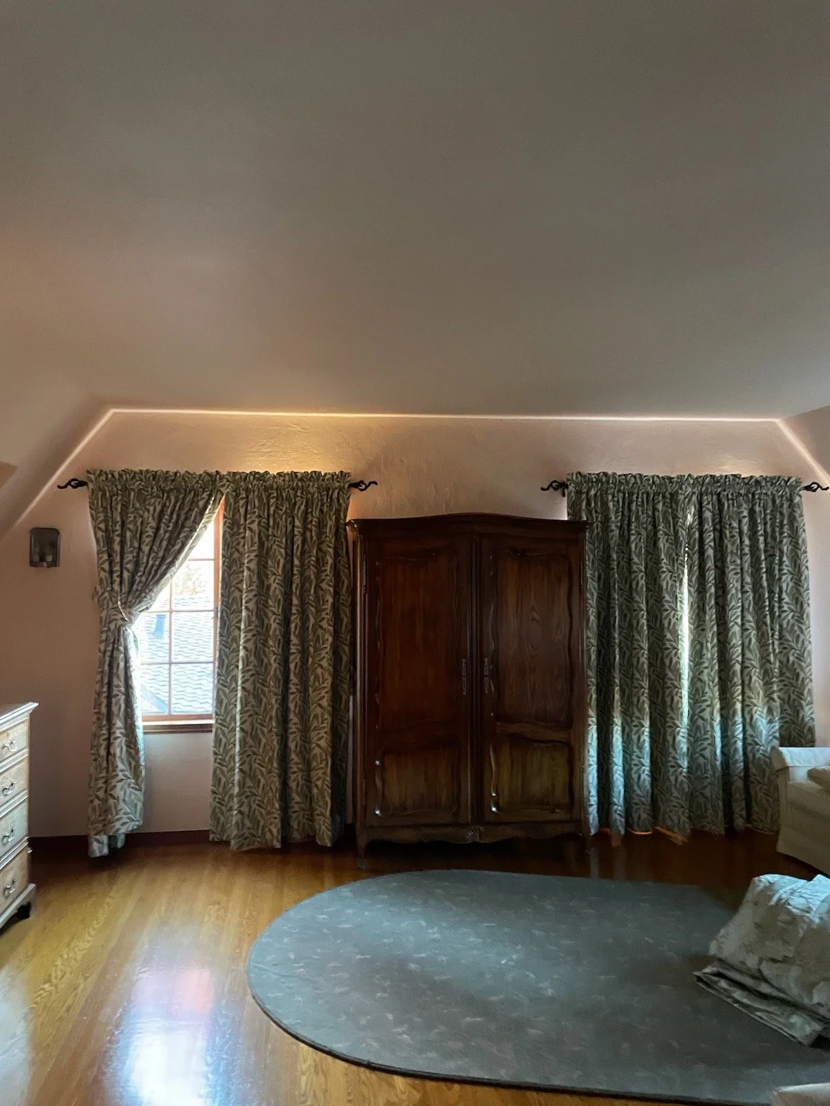 Blackout Lined Ripplefold on Custom Curved Rod w/ Offset Split-Closed